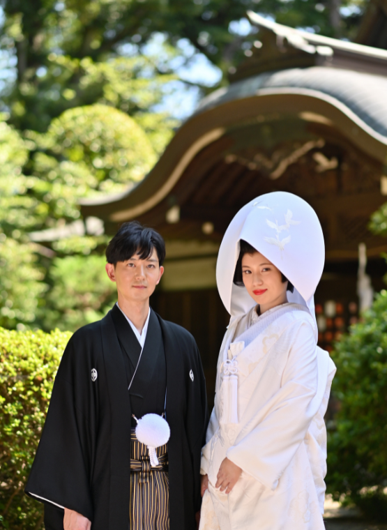 武蔵一宮氷川神社でのご結婚式プランには弊社撮影の集合写真とスタジオお二人写真(白無垢・紋服)が含まれております。